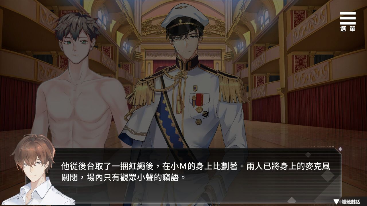 「今天我会带你体验真正的调教,结束后如果你觉得满意,并且能够信任我,我会协助你治疗你的障碍。」